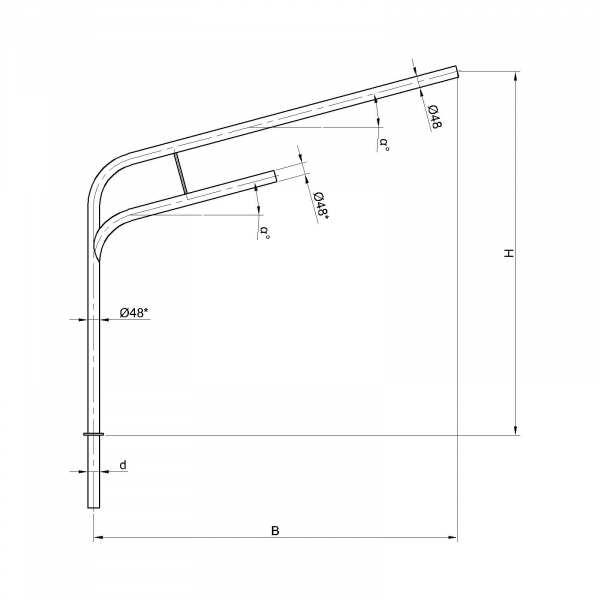 Двухрожковые кронштейны К9-2,0-2,0-1-1 предназначены для крепления светильника на трубчатой опоре освещения.